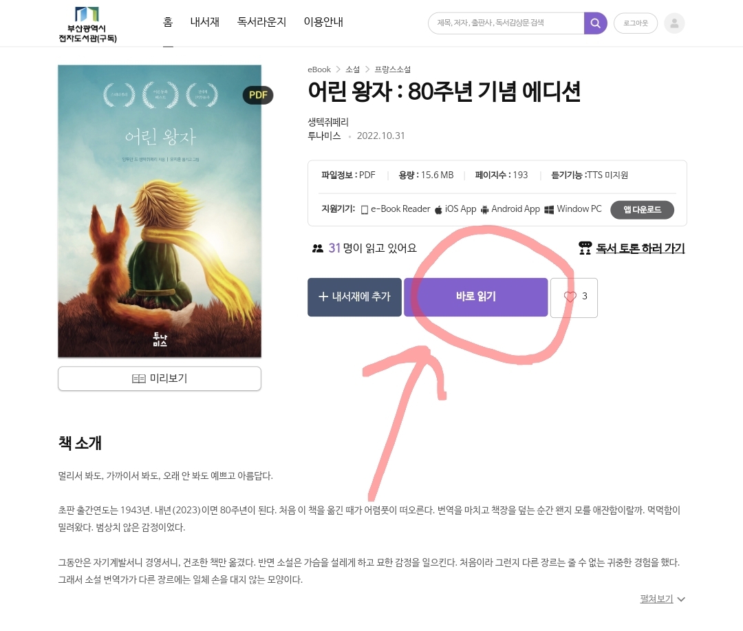 몇몇 신간이나 베스트셀러는 예약을 해야지만 볼 수 있지만 어린왕자 같은 오래된 책을 바로읽기가 가능 했다.