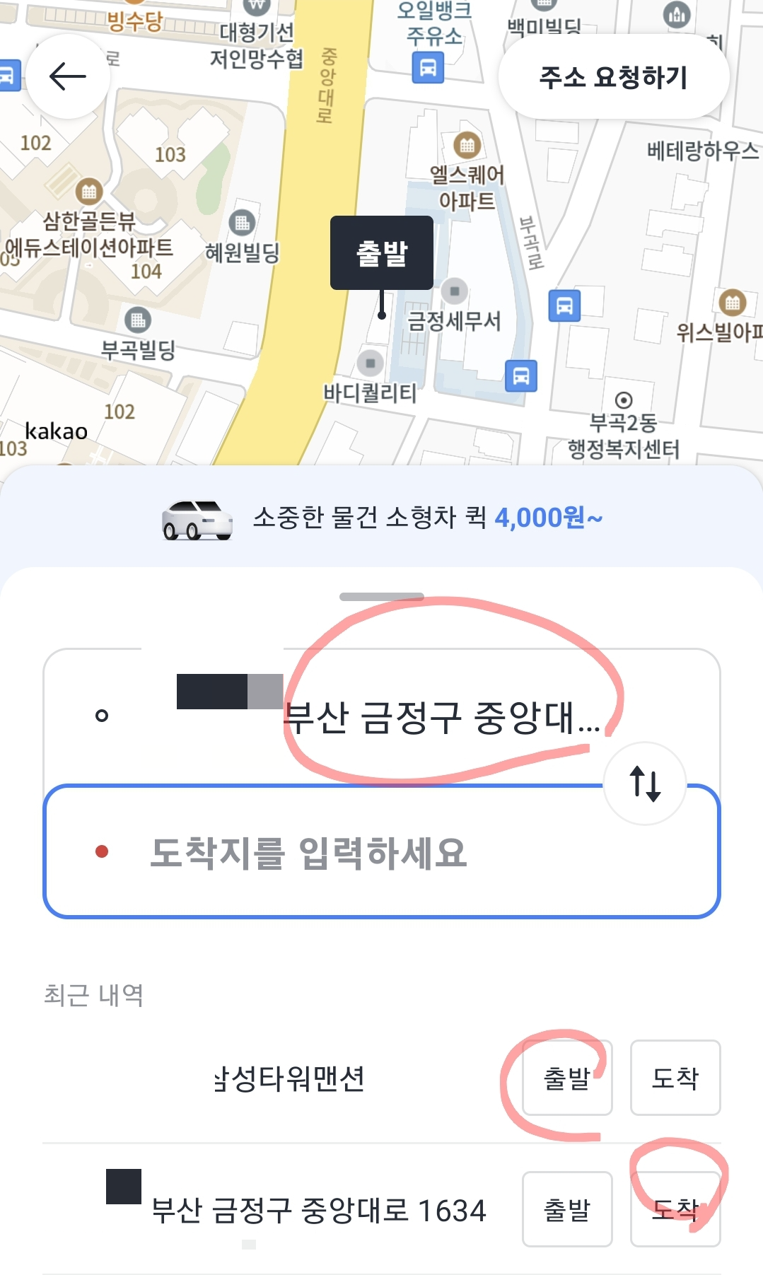 상단에는 지도도 같이 나오고 있어서 위치를 한번 더 확인하고 호출 할 수 있는 점도 좋았다.