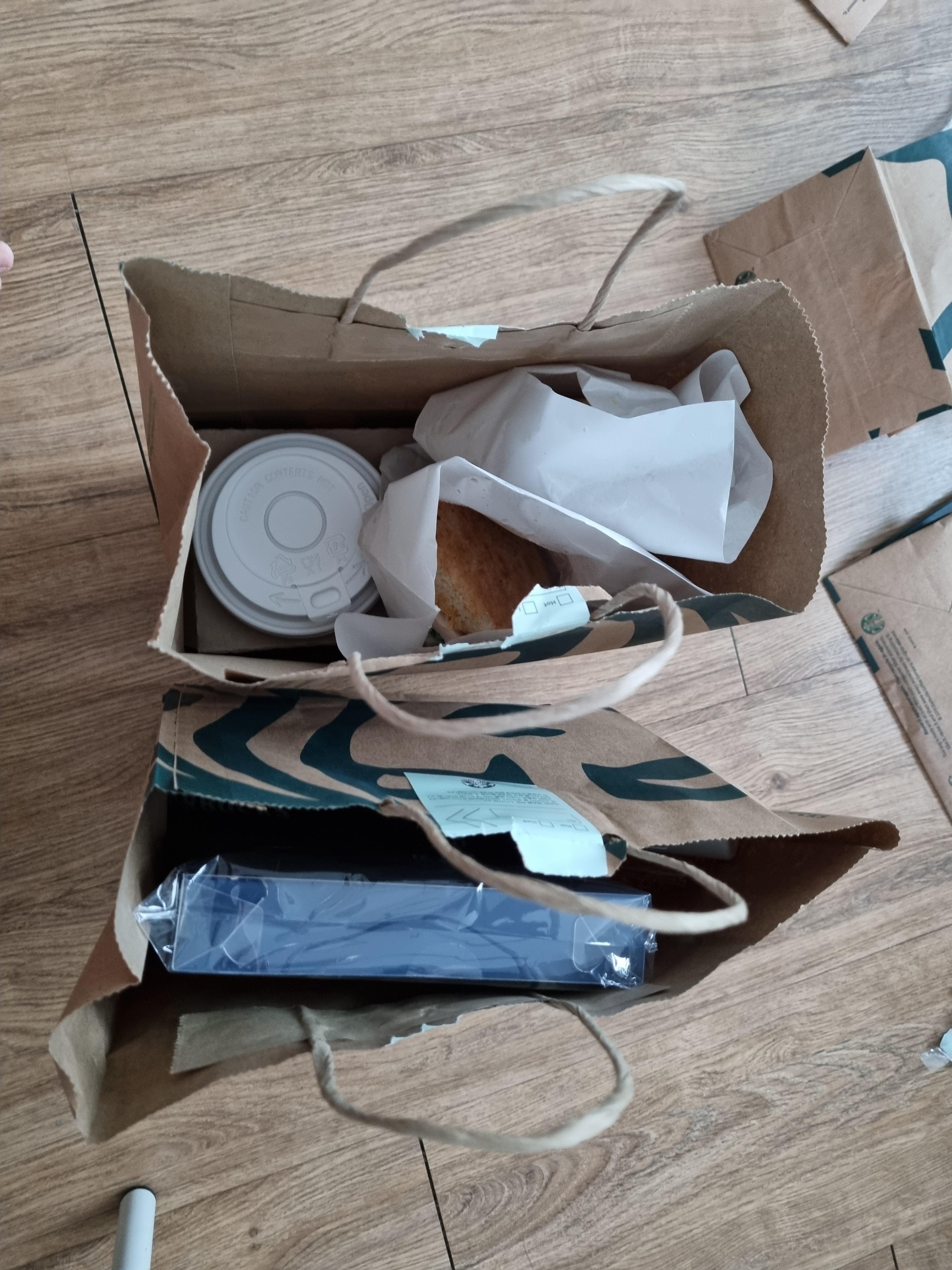친환경에 앞장서고 있는 기업이라 포장상태도 궁금함에 주문을 해보았는데 비오는날은 포장이 두배로 많이 오는거 같은 느낌이 든다. 내가 주문한건 음료 하나와 샌드위치 하나 커트러리, 우산 하나 였는데 이 모든게 각각의 가방에 오는 바람에 굉장히 많은 종이가방에 당황 했다.