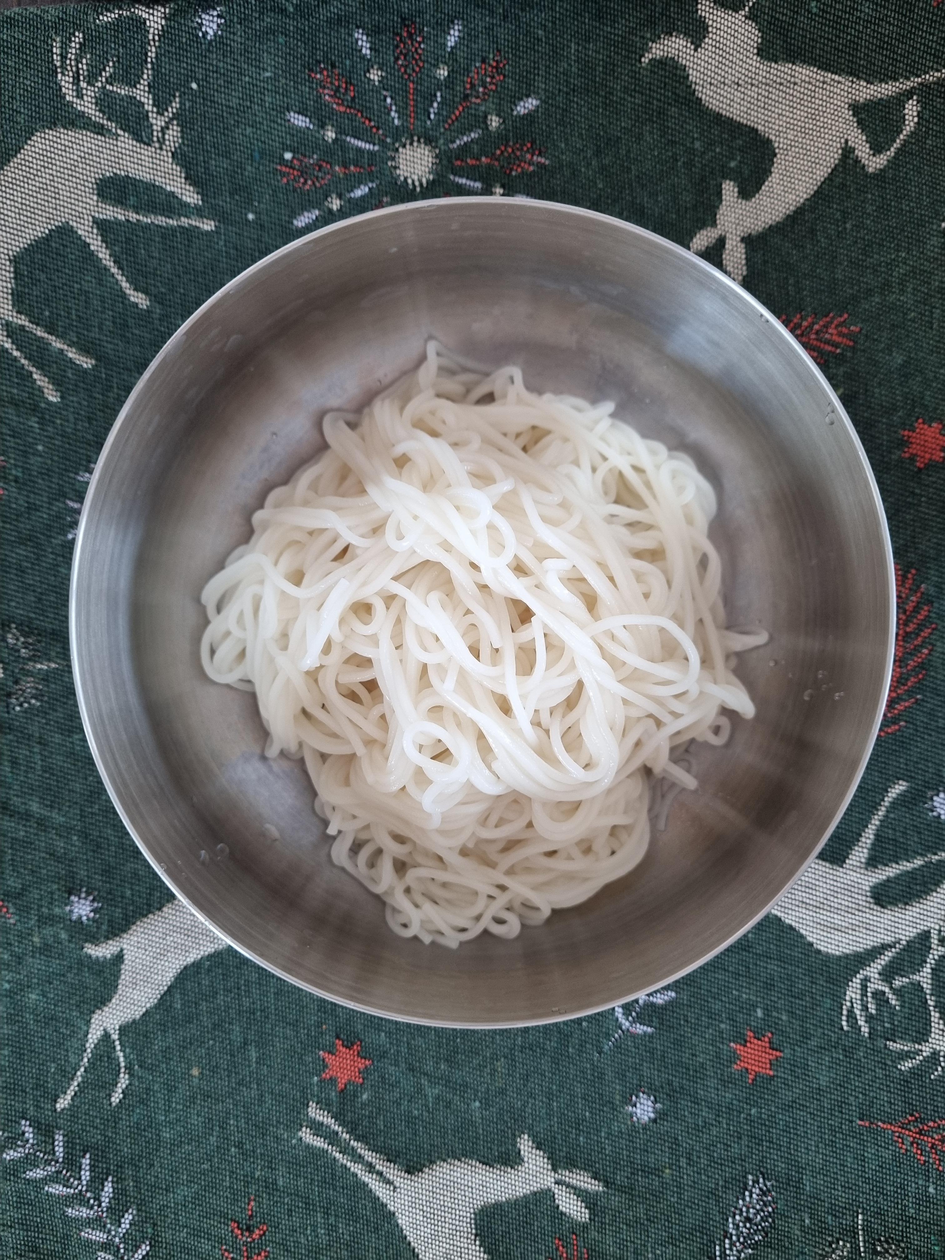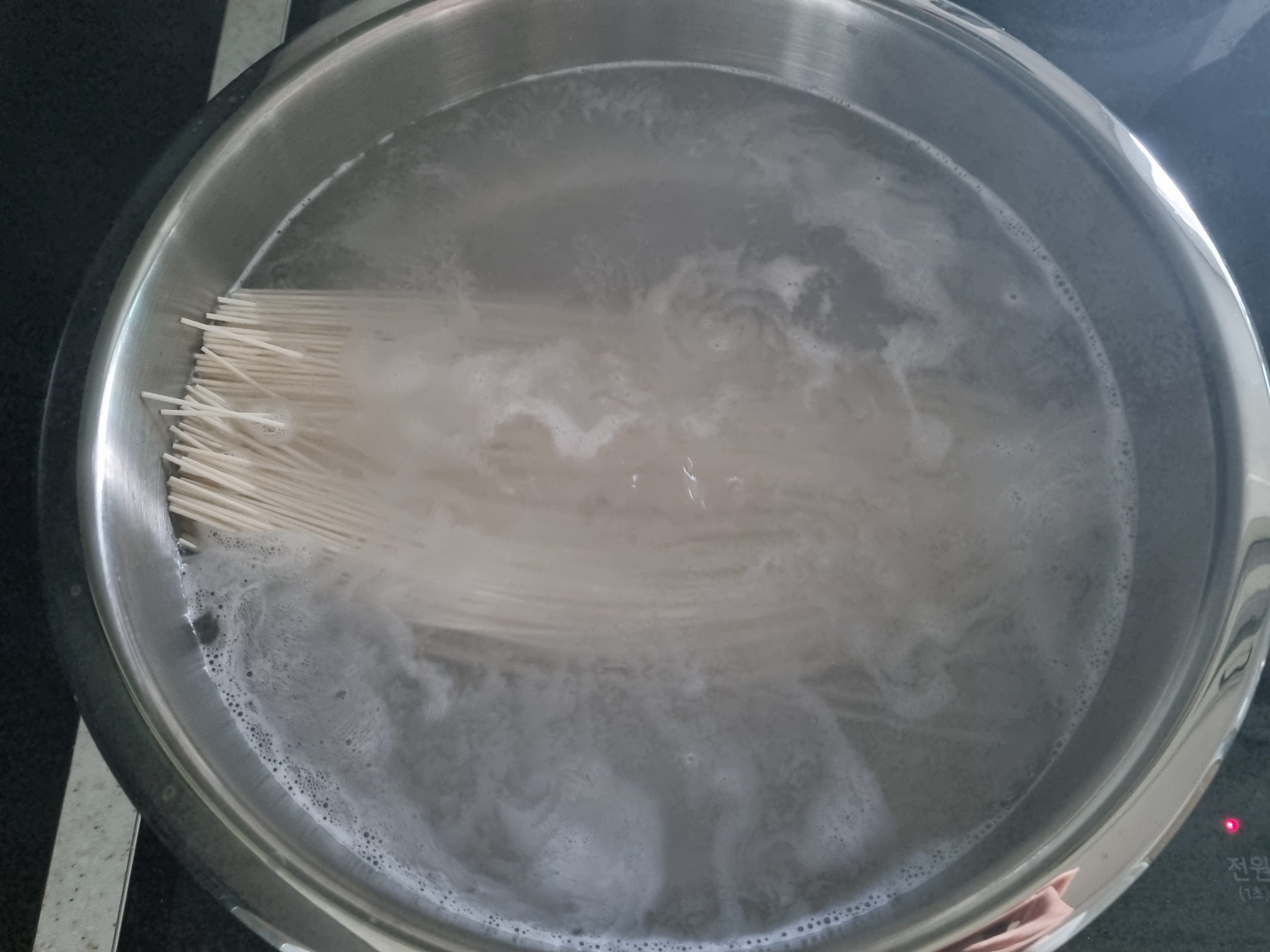 국수를 잘 삶는 비법은 물이 보글 보글 끓을때 넣어서 면이 뭉치지 않게 휘휘 잘 저어 가며 익혀 주는 것이 포인트다. 그리고 너무 퍼지지 않도록 설명서에 적힌 시간을 준수하여 건져내는 것이 좋다.