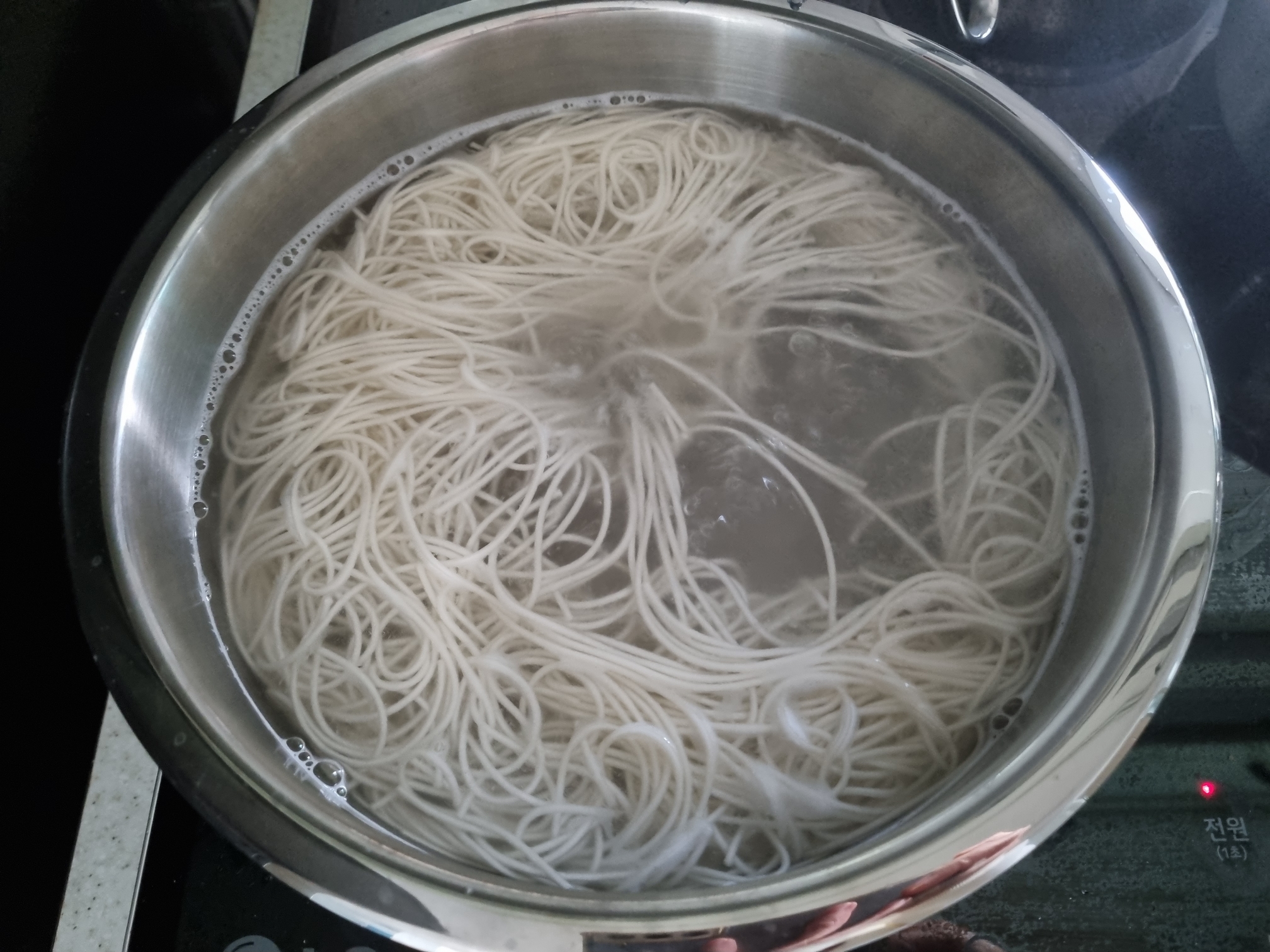 스사모에 가벼운통즈는 냄비가 큰데 높이가 낮아서 국수를 삶을때 굉장히 좋다. 물도 굉장히 빨리 끓고 국수가 냄비가 크다 보니 서로 붙지 않고 잘 익는다. 설명서에는 3분~4분이라고 나와 있는데 우리집 인덕션에는 화력이 높아서 인지 4분을 했더니 조금 많이 익은 감이 있다. 온국수에 약간 꼬들꼬들 탱글탱글하게 먹고 싶다면 3분만 삶고 뜨거운 육수에서 조금 더 익을테니 말이다.