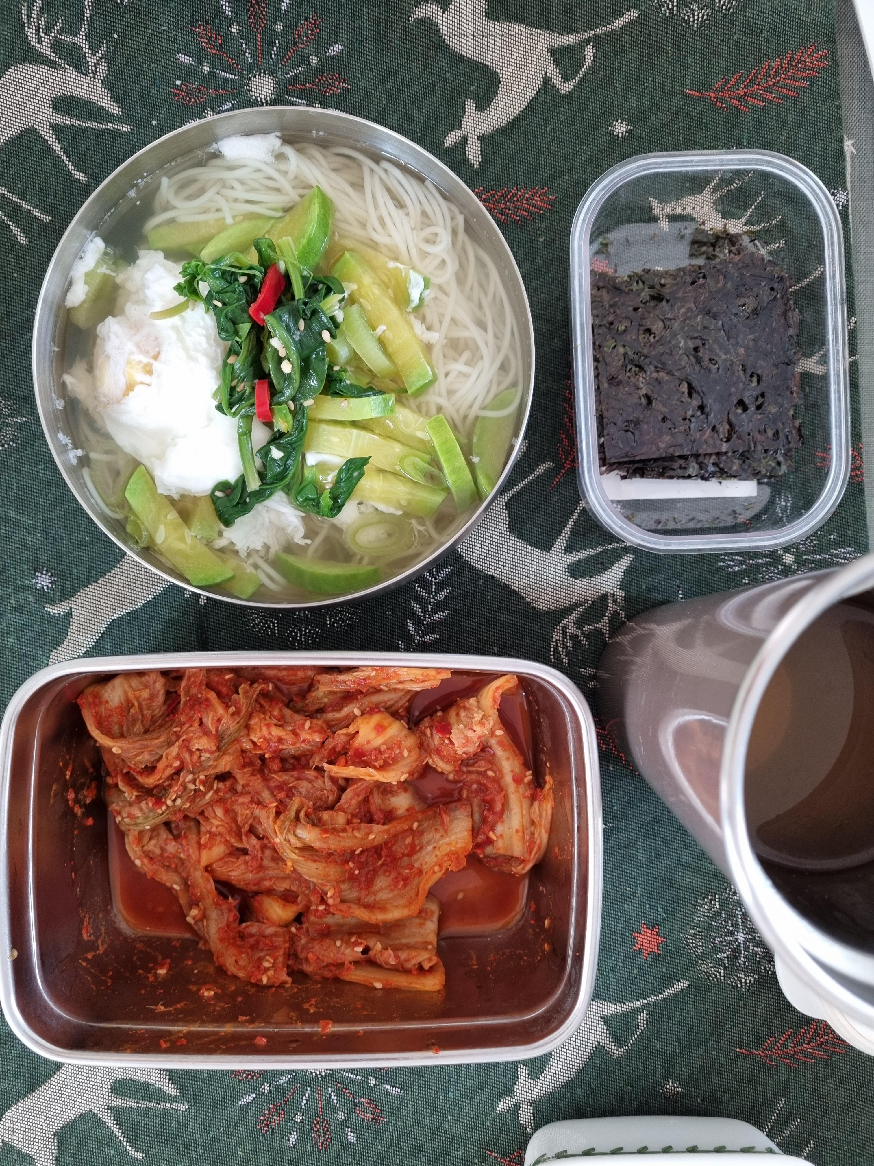 요렇게 뜨끈한 국수는 미담 찬기에 또 담아 내면 따끈하게 먹기에 좋다. 단 미담 찬기는 열을 그대로 가지고 있기에 옆면은 굉장히 뜨거우니 조심조심 옮겨야 한다. 요런 온 국수에는 조미김도 맛있지만 곱창김을 슬쩍 구워서 참기름도 맛소금도 없이 바삭하게만 구워서 조금 뿌셔서 참기름 한방울 떨어 뜨려 먹으면 맛있다.