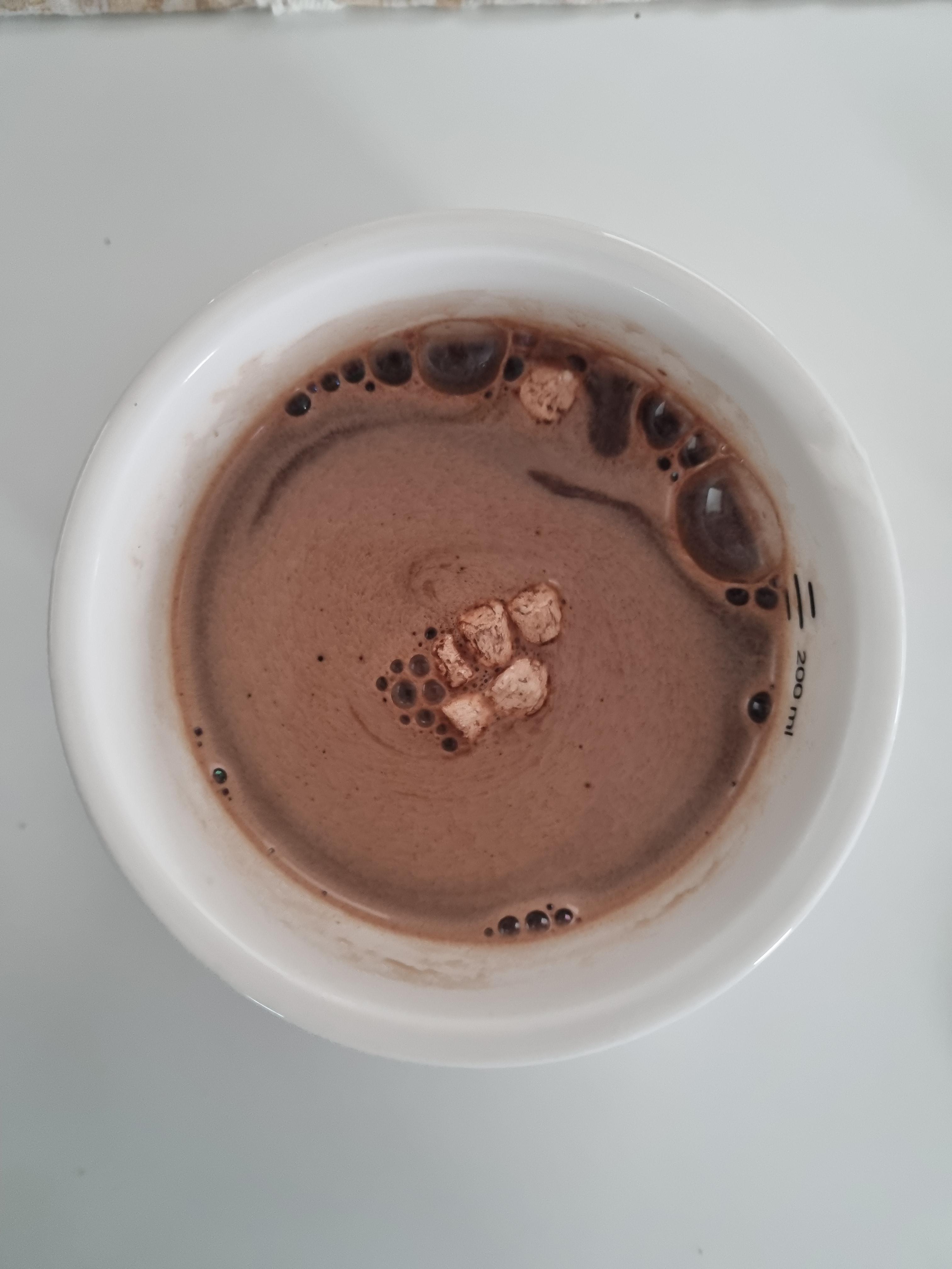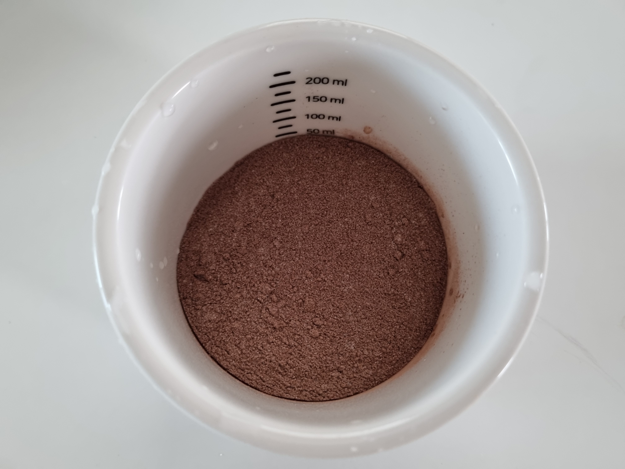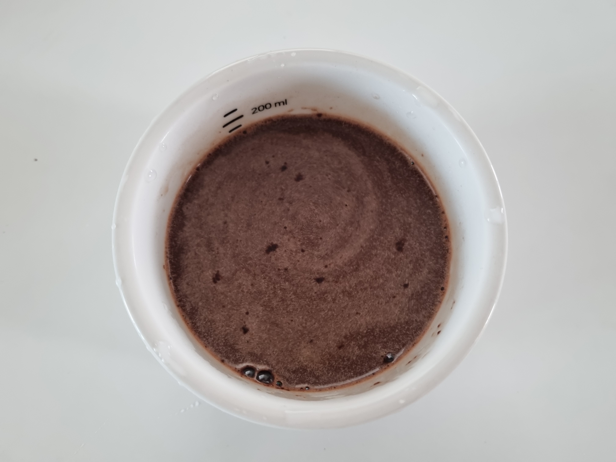 요런건 제품 설명서대로 먹는것이 가장 맛있다. 한봉을 부어 보니 50ml 정도 까지 되고 물은 180ml 를 부어라고 되어 있다. 꽤 진한 핫초코가 된다.