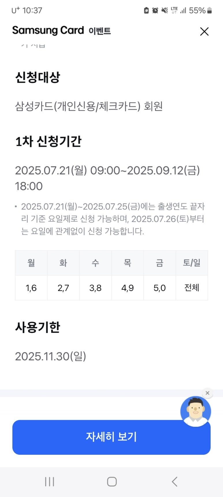 | 출생년도 끝자리 | 신청 요일 |