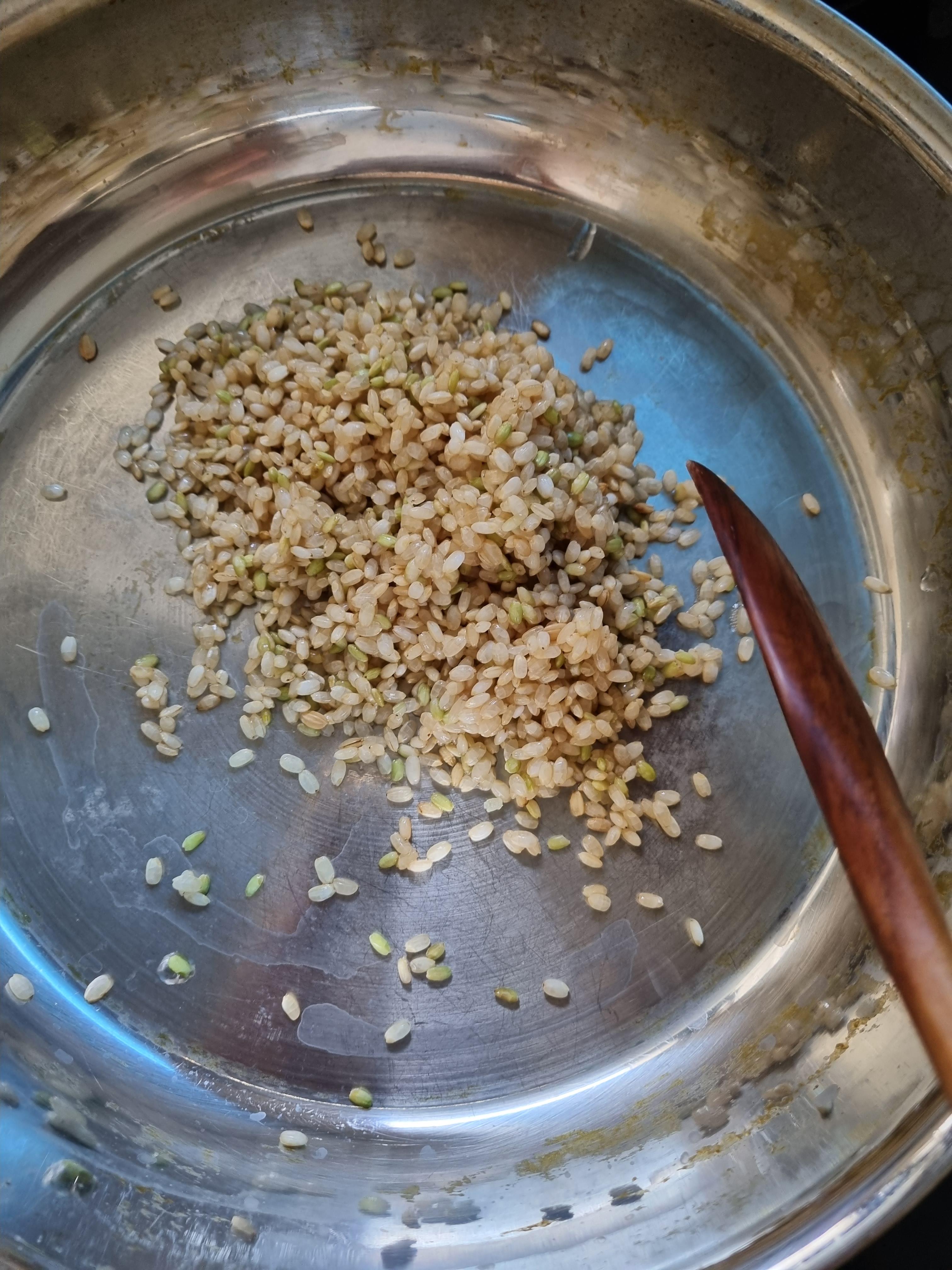 중간중간 연두색 현미가 보이긴 하는디