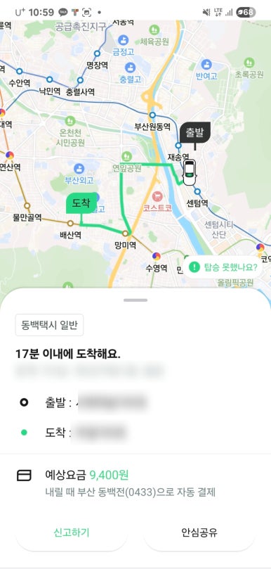 요즘 부모님께 콜을 불러 드릴 때도 큰 건물을 얘기 하고 택시 번호를 공유해드리고 도착점을 찍기만 하면 앱을 호출한 사람이 결제가 되기 때문에 부모님도 편하게 이용하실 수 있다. 결제는 자녀 쪽에서 되니 말이다. 안심공유가 있어서 이동경로도 확인이 가능해서 좋은 거 같다.