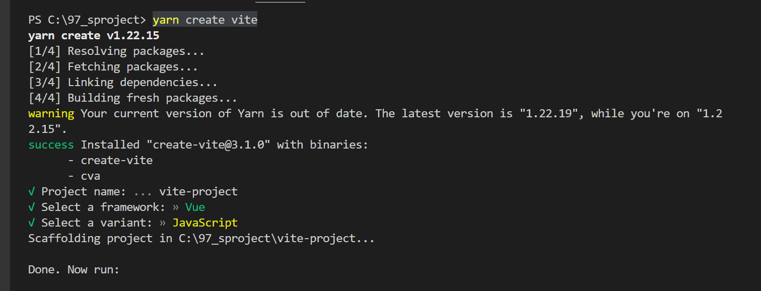 yarn create vite